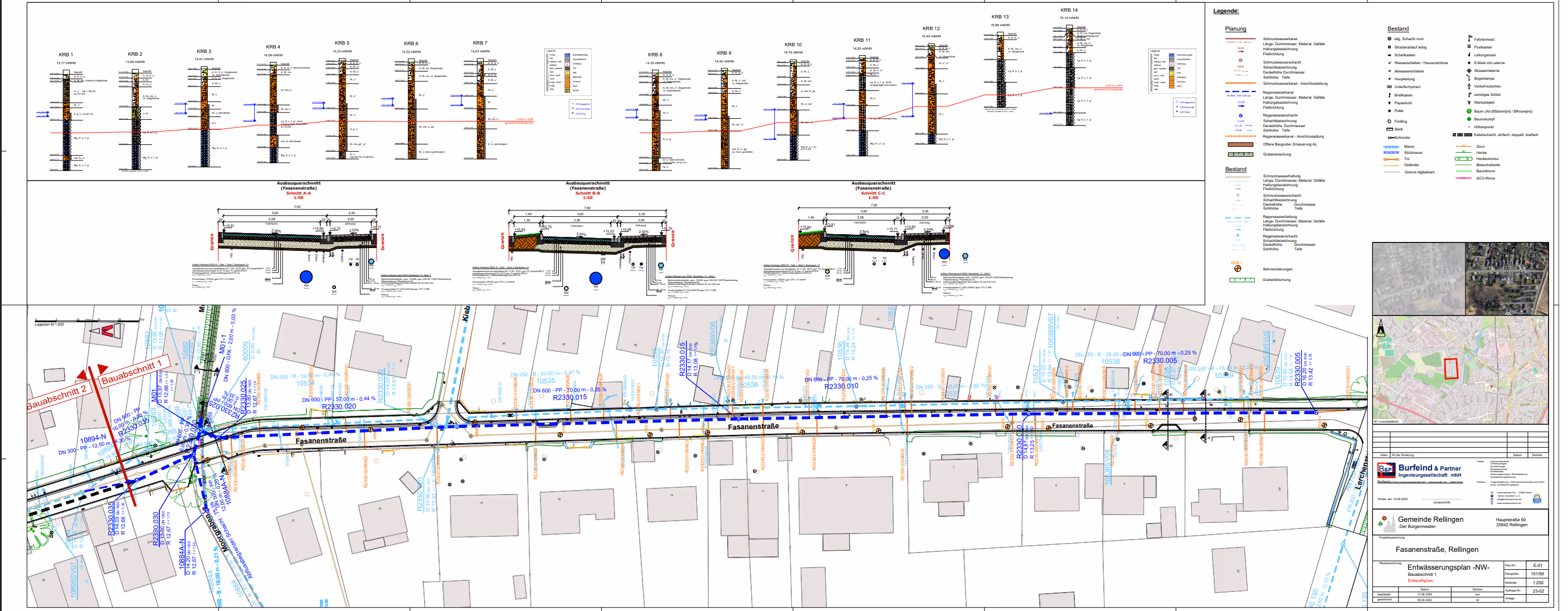 Das Projekt „Ausbau Fasanenstraße“ in Rellingen umfasst die umfassende Sanierung der unterirdischen Infrastruktur sowie den anschließenden Ausbau des Straßenraums. Die Maßnahme wird mehrstufig umgesetzt und befindet sich derzeit in der Ausführung.